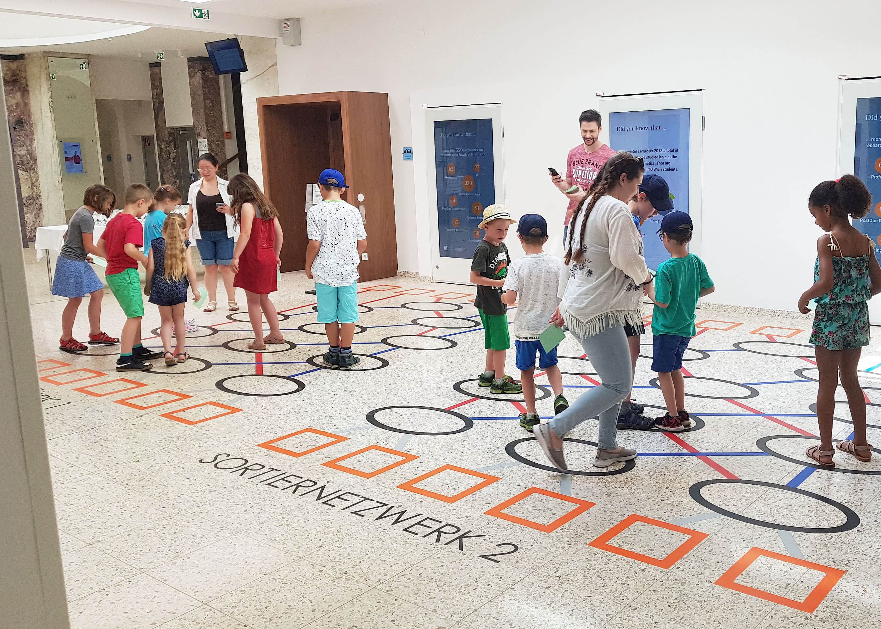 “The exhibition is attracting a lot of different people. I see passersby, our students and our construction workers trying to decipher brainteasers - everybody wants to know what the exhibition is about“, explains Gerald Futschek, project manager of Adventure Informatics. Together with his team, he developed the didactic concept of the interactive setting: “First do it, then deal with the theory behind. This way people learn how to think for themselves and can approach the complex contents of informatics“, Futschek is convinced.