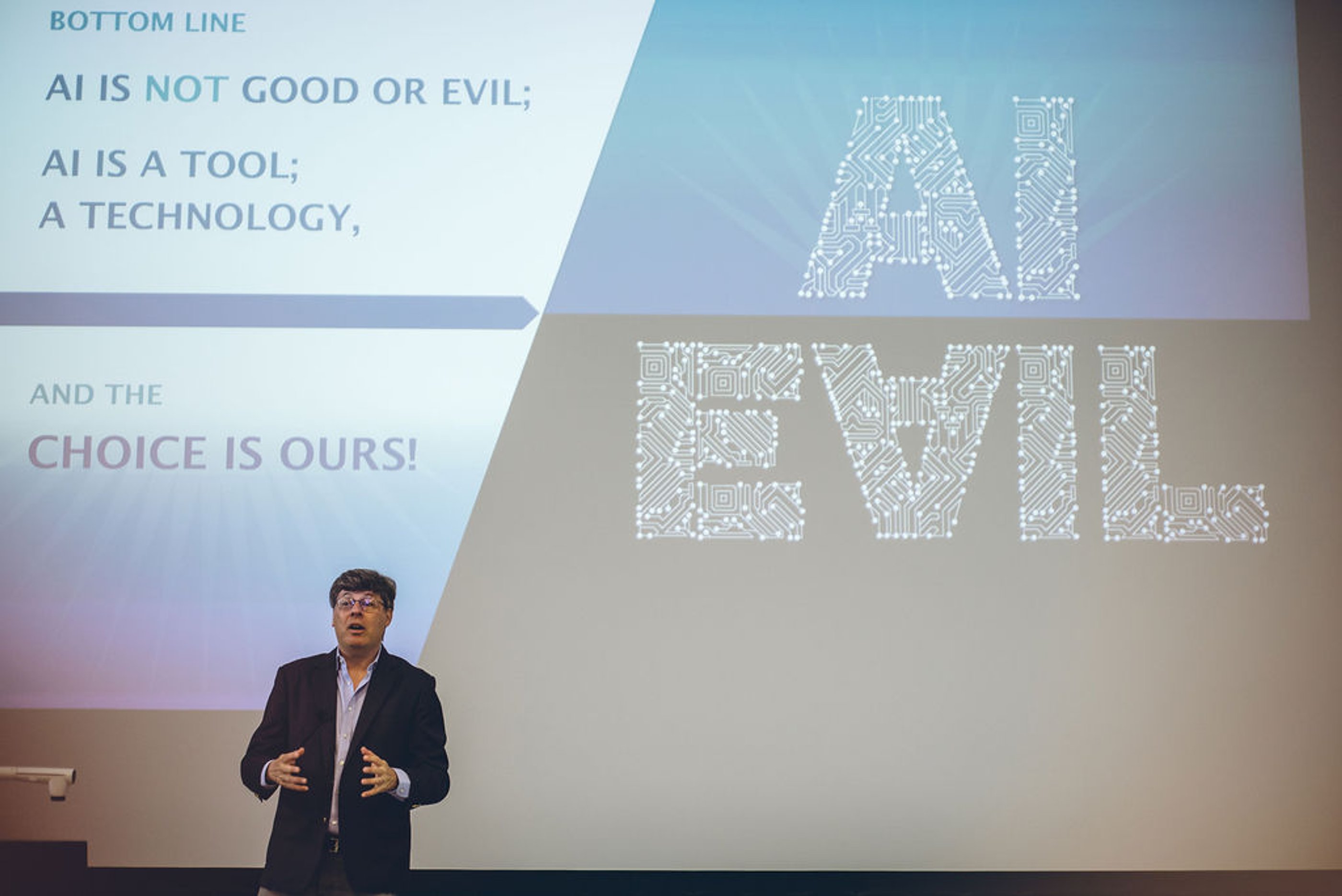 On the contrary, despite the legitimate concerns people have about AI and technologies linked to it, as there are autonomous weapons for example, he thinks AI having a strong potential for being a beneficial technology. The question is “How do we deal with the tools and how can we improve it“. Eric Horvitz from the Microsoft Research Labs and member of the Scientific Advisory Committee of the Allen Institute for Artificial Intelligence stated “It’s the absence of AI technologies that is already killing people“, and Etzioni agrees with that, referring to medical errors caused by tired and overworked medical staff, to give an example. “Human drivers worry me“, he added, and alludes to the high mortality rate due to destructive driving - intelligent cars could save a lot of lives instead.
