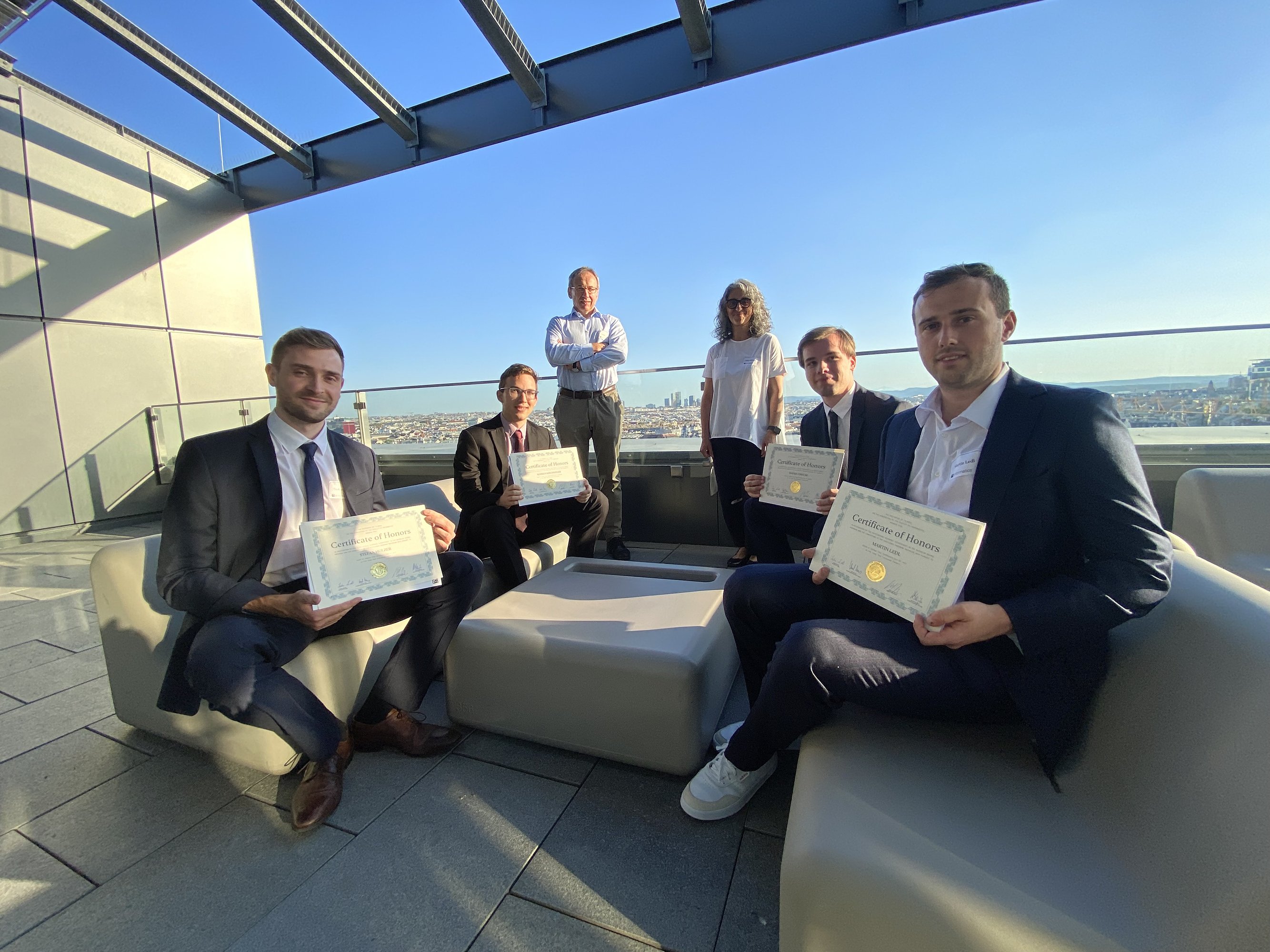 This summer semester, we held our 32nd Epilog ceremony in a hybrid form, virtual via Zoom and with a tiny audience in TUtheSky. On 16 June 2021, our (Zoom) audience witnessed the four best candidates compete for the Distinguished Young Alumn Award as well as the awarding of the prestigious Bachelor with Honors certificates. Moreover, the Best Poster Award winner was announced—elected by TU Wien Informatics staff via online voting.