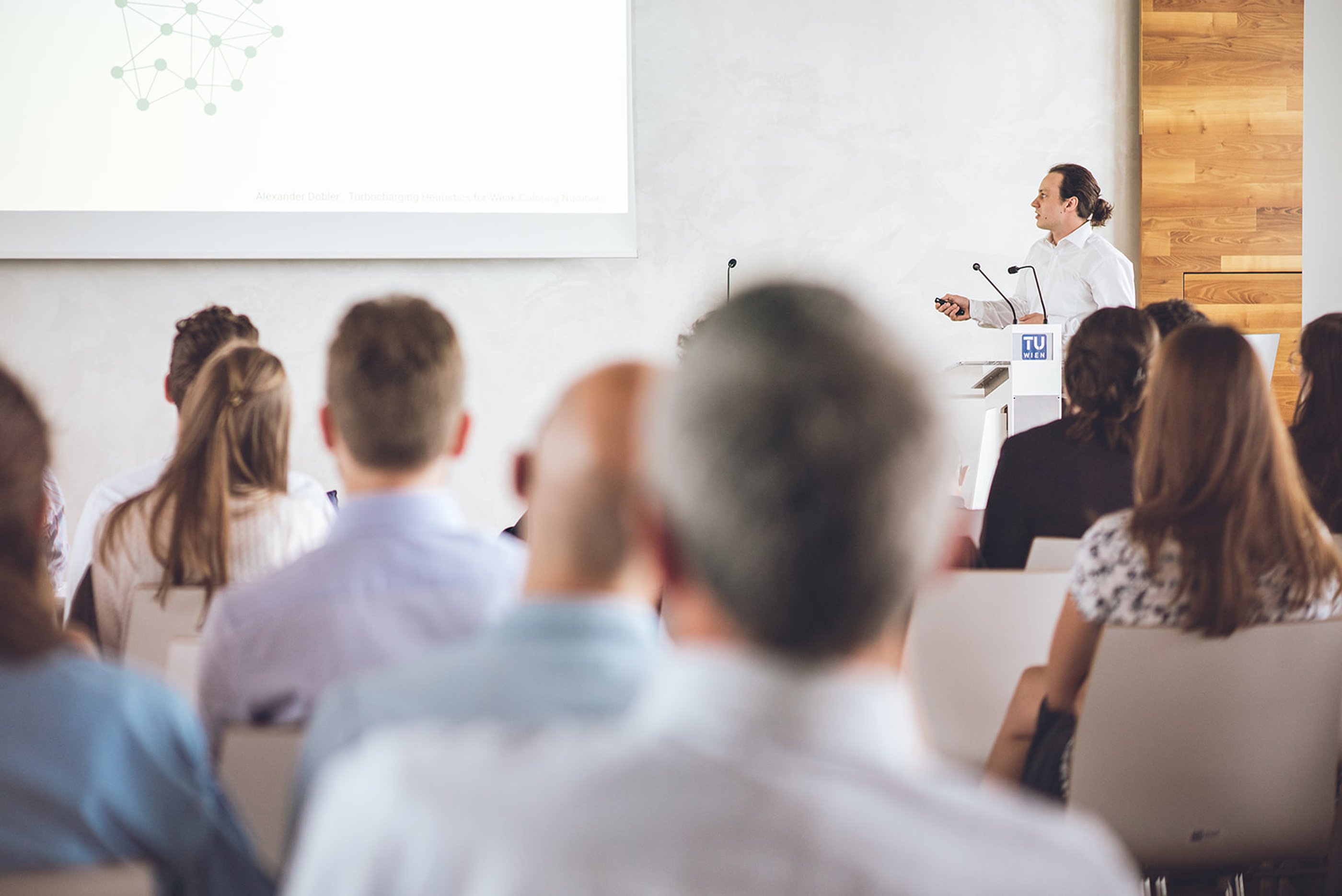 The further three best graduates who presented their diploma theses were also honored for their excellent achievements. Alexander Dobler showed us that complex networks are everywhere and how to solve hard problems with real-world graphs. He wrote his thesis about “Turbocharging Heuristics for Weak Coloring Numbers” and was supervised by Martin Nöllenburg.