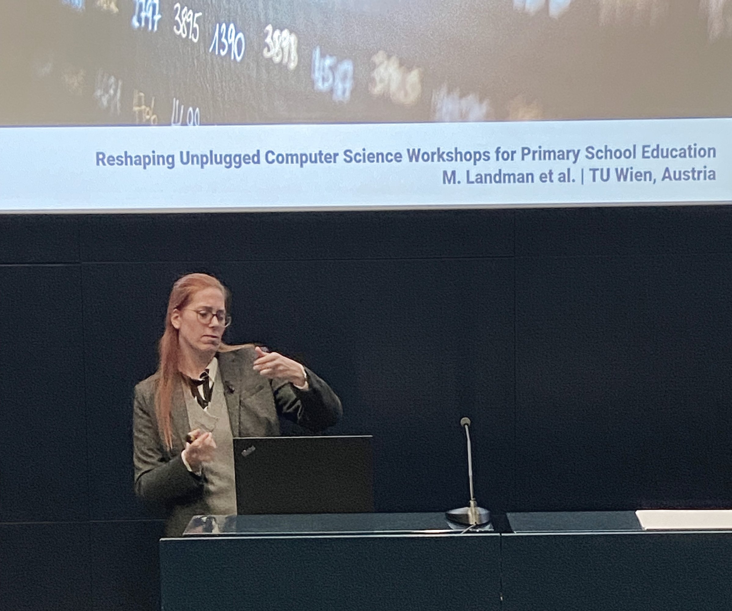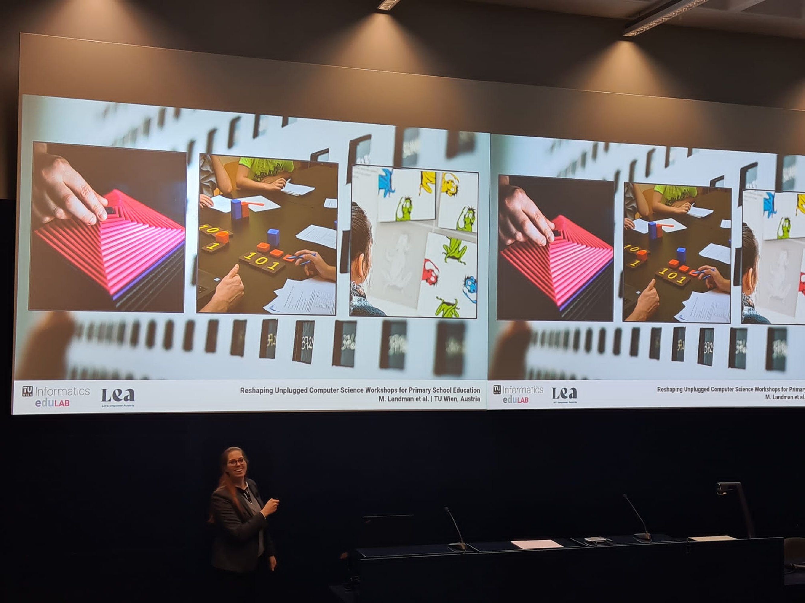 Martina Landman presented her paper “Reshaping Unplugged Computer Science Workshops for Primary School Education”, which was co-authored by Sophie Rain, Laura Kovacs and Gerald Futschek. The paper discussed the team’s research effort to adapt computer science activities for primary school children, making them age-appropriate and engaging to support diverse technological interests in STEM. In 2023, TU Wien Informatics started its first workshop program for elementary schools, funded by LEA Women’s Fund.